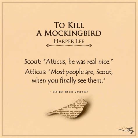 Another important lesson that Scout learns throughout the novel is the importance of standing up for what you believe in. Atticus Finch is a great example of this; he stands up for what is right, even when it is unpopular or dangerous. One of his most famous quotes is "You never really understand a person until you consider things from his point of view . . . until you climb into his skin and walk around in it." This quote shows that it is important to try to understand someone else's perspective in order to truly understand them.